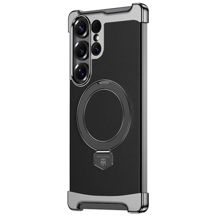 Borderless MagSafe Ring Holder Plain Leather Phone Case