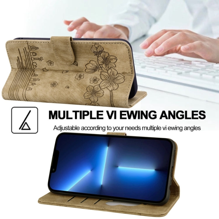 Cartoon Sakura Cat Embossed Leather Phone Case