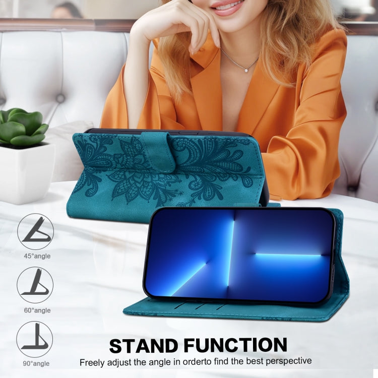 Lace Floral Embossed Magnetic Buckle PU Phone Case With Wrist Strap