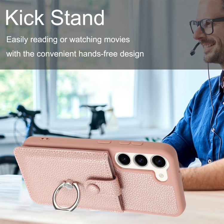 Litchi Texture Drawing Card Bag Ring Holder Phone Case
