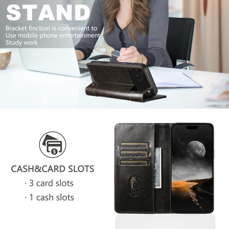 Suteni Baroque Calf Texture Buckle Wallet Leather Phone Case